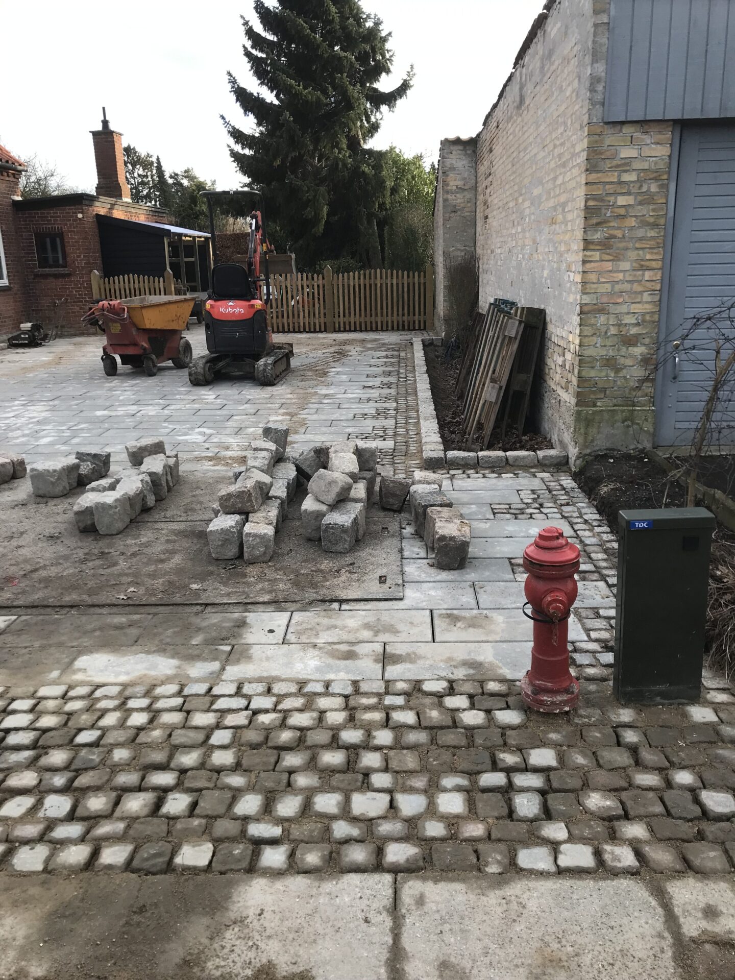 Belægning med sten og fliser